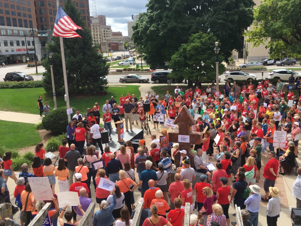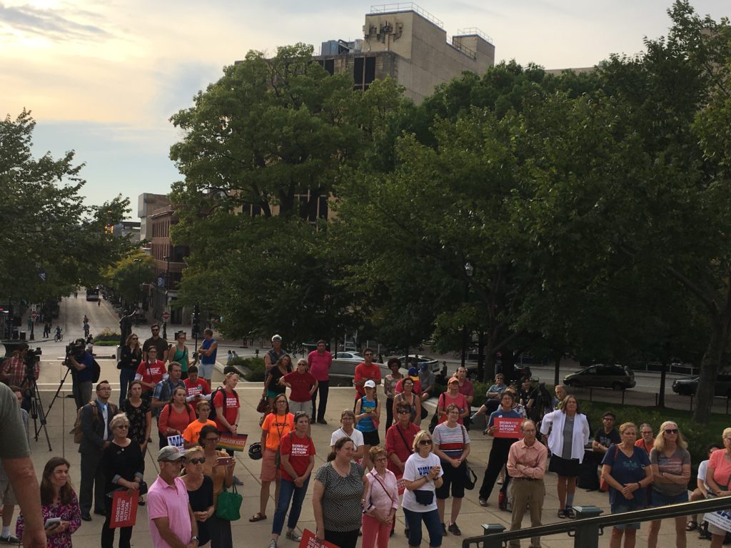 For the 4th annual National Gun Violence Prevention Awareness Day (Wear Orange Day) in June, WAVE organized four days of events across the state, including rallies, press conferences, vigils, and community gatherings. And in Milwaukee, several downtown buildings turned orange for the evening, including the Bucks training facility, the Gas Light Building, and the Pfister Hotel. At all events we empowered our supporters and the public to take action by standing strong with our highly-visible movement, honoring the memories of lives lost, and demanding change from their elected officials.