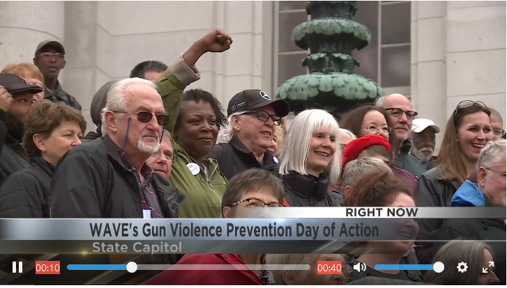 This October, we hosted our big biannual event – the Gun Violence Prevention Day of Action at the Capitol. We had an enthusiastic turnout of about 150 WAVE activists from across the state. Every legislative office got the message that we need background checks on all gun sales and extreme risk protection orders.